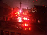 既に野次馬だらけ、普通の6m道路に消防車が10台位(写真には3台しか写ってへんけどね)、