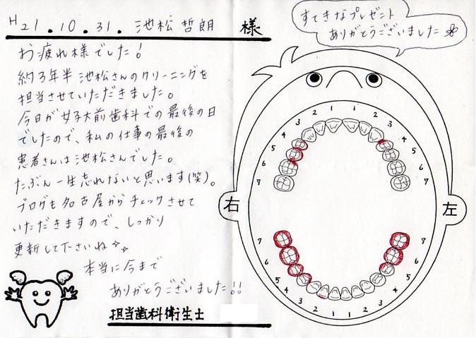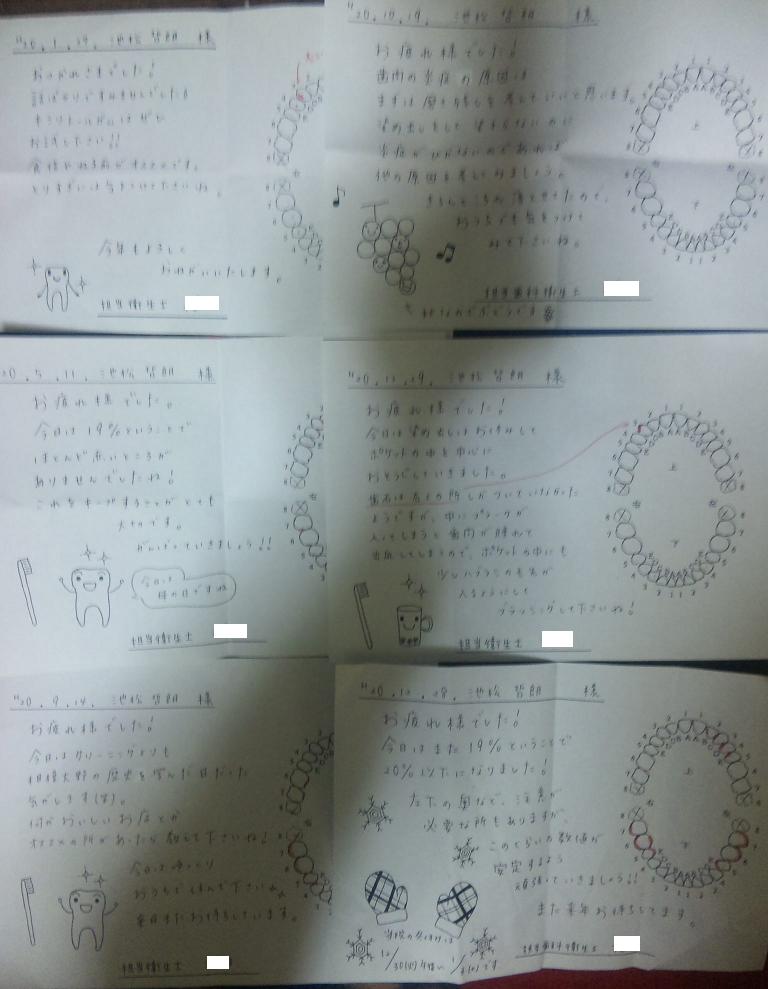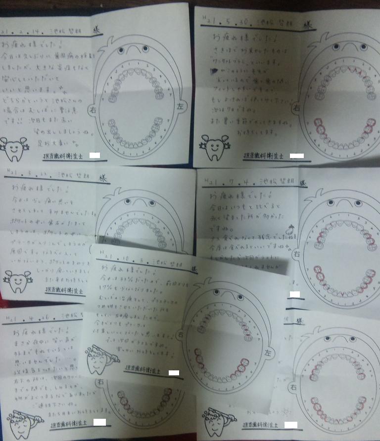 毎回、診察が終ると受付で衛生士さんが書いた診察結果とメッセージを渡されるんやけどね、