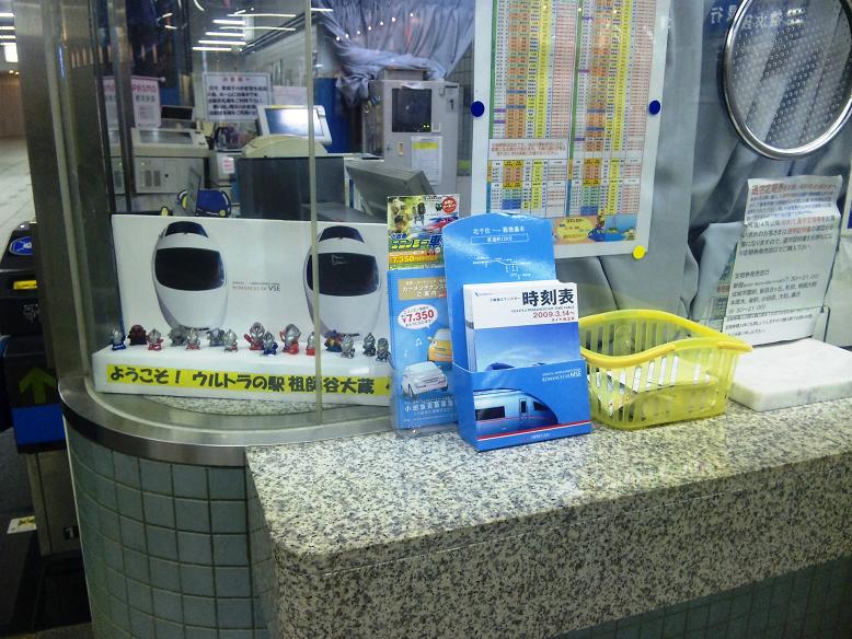 改札横の窓口にはウルトラマンのちびフィギュアが立ち並び…、