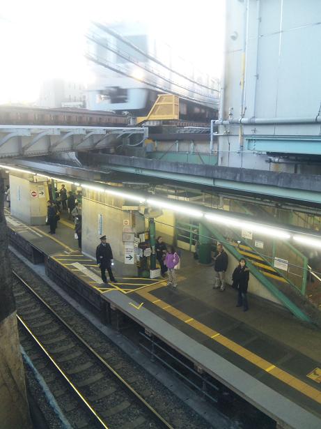 南口の階段の途中から撮った小田急線のホームと、その