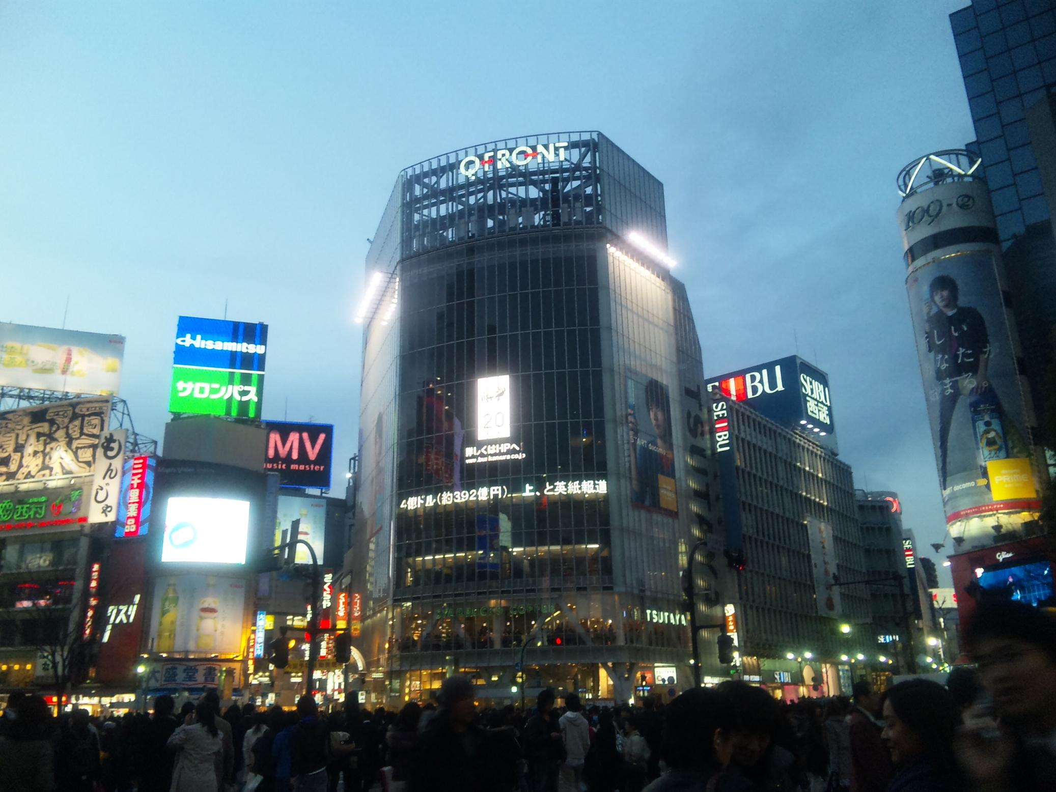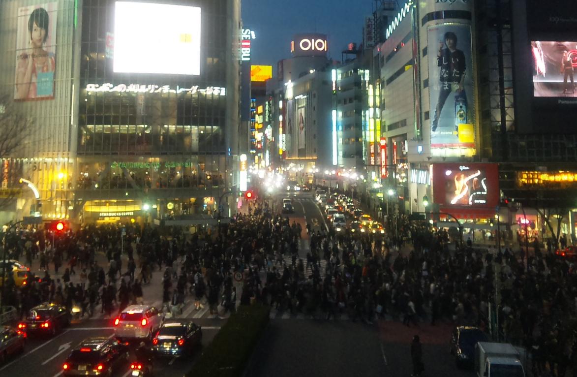 日没直後の渋谷のハチ公前交差点…。
