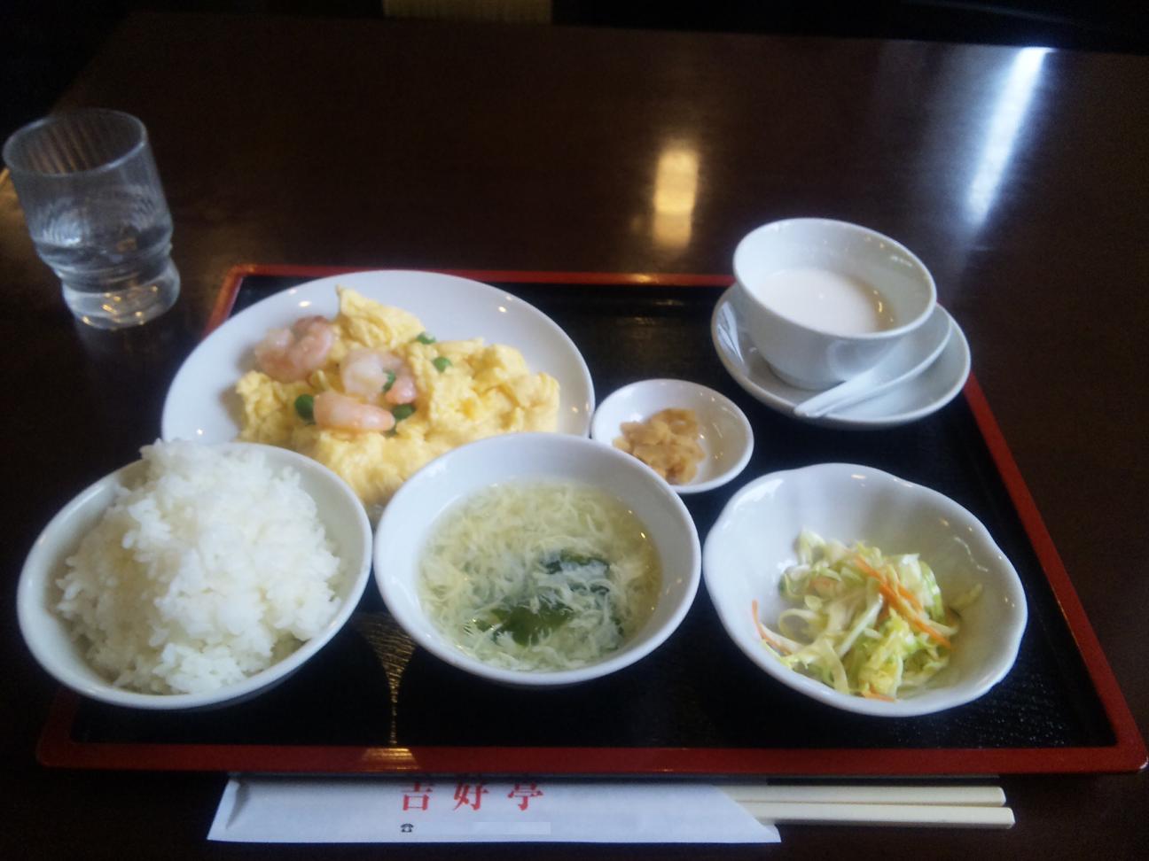 華屋与兵衛の「汐留」と、吉好亭の「海老と玉子の炒め物の定食」