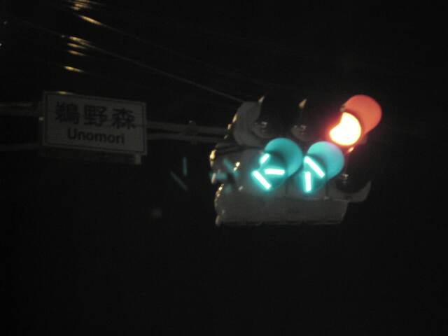 ここはいつもボクが「やまとの湯」に行く時に通る鵜野森交差点の信号です。
