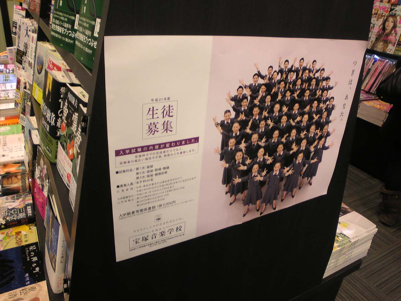 駅の中の本屋さんに貼ってた音楽学校の生徒募集のポスター。